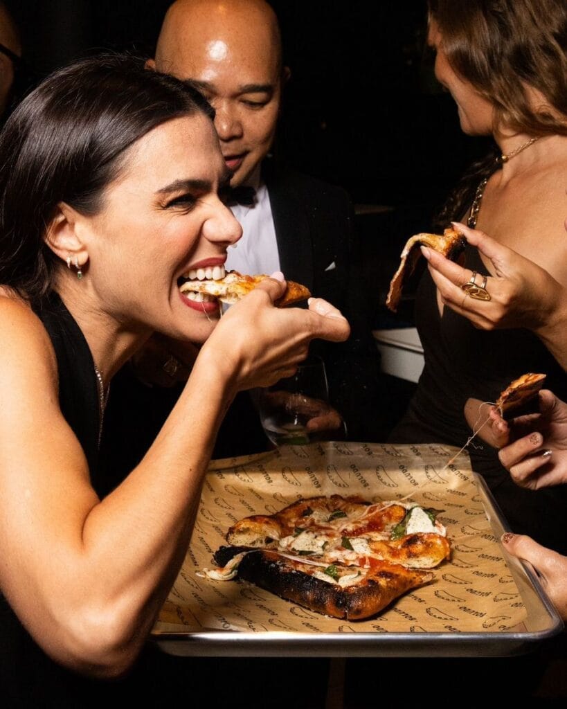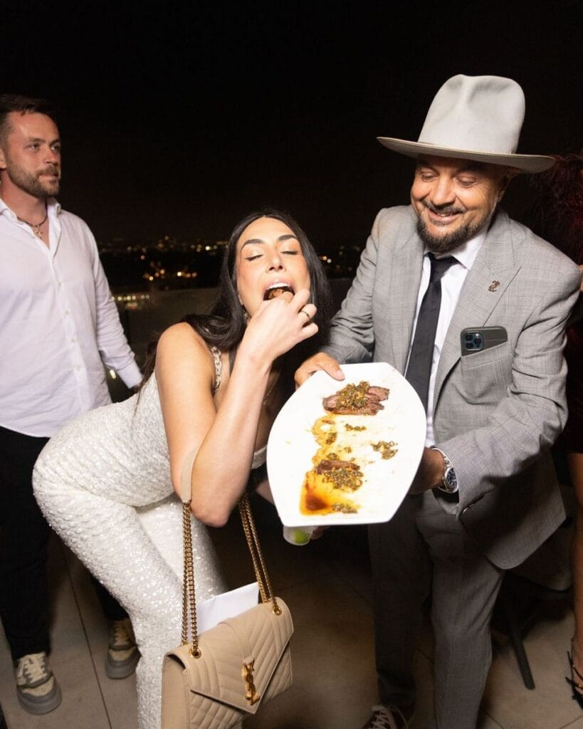 Facundo Defraia, conocido por su espíritu revolucionario en la cocina, fue el encargado de la propuesta gastronómica de la noche. Sus pizzas de diversos sabores con forma de diamantes se convirtieron en el plato estrella. Los invitados pudieron degustar variedades inusuales como pizza de queso azul y caviar, que sorprendió por su combinación de sabores y presentación. Además, se sirvieron exquisitas entrañas, sashimis de salmón y una selección de vinos cuidadosamente elegida para maridar cada plato a la perfección.